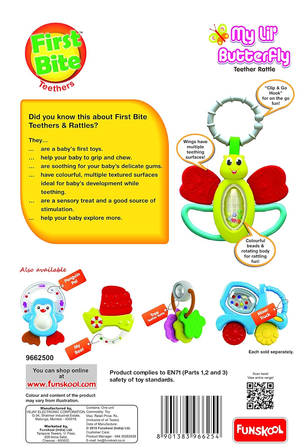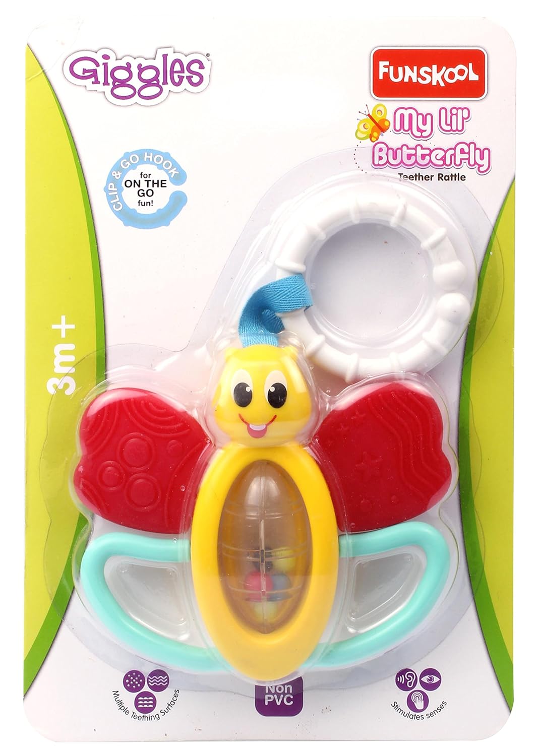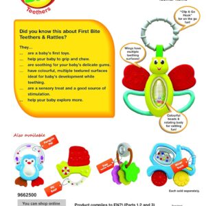 - Adorable Butterfly Design: The My Lil’ Butterfly Teether Rattle features a colorful, smiling butterfly that delights babies with its cheerful look and engaging design.